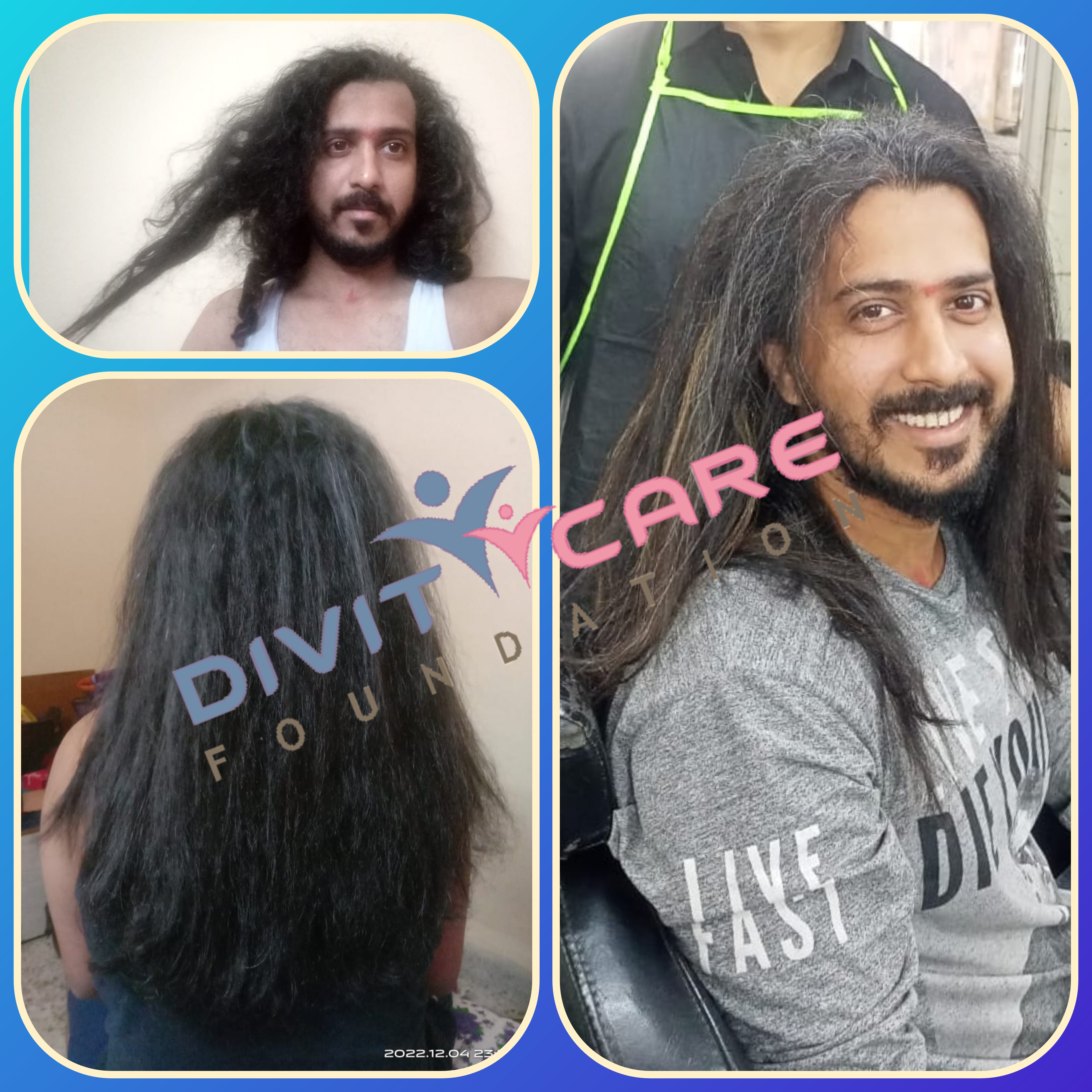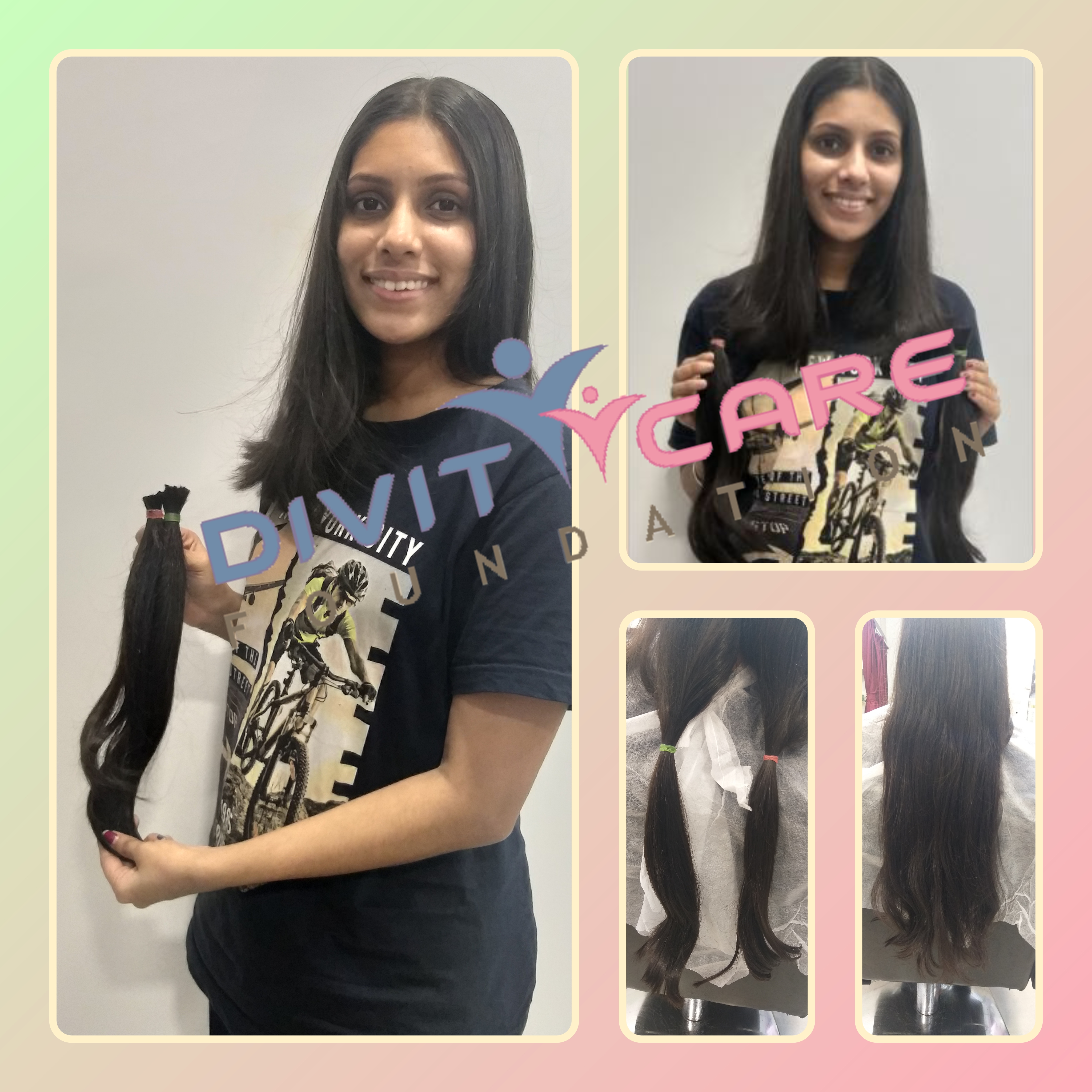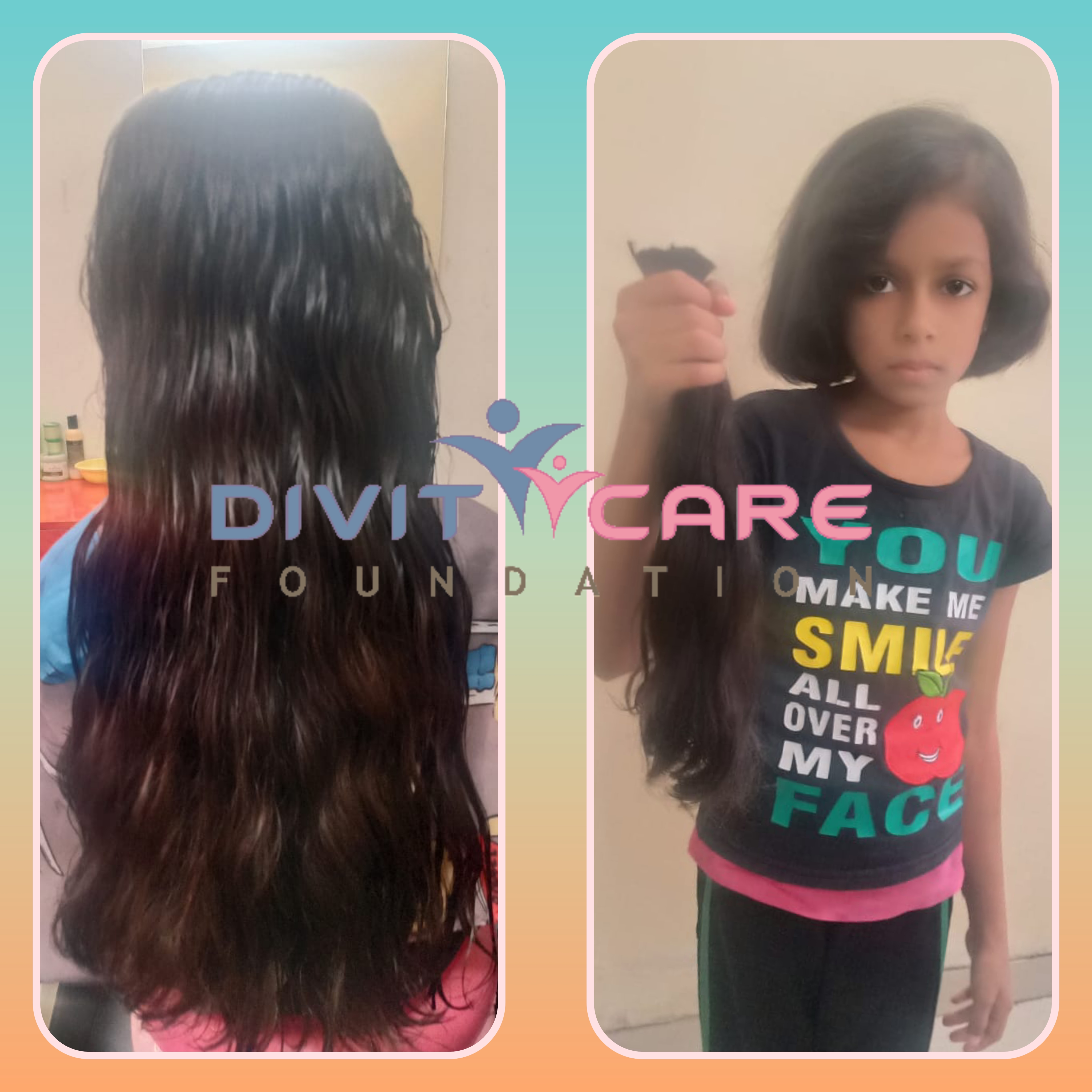 I am Happy to Donate my such a long hair for a good cause which can bring smile on Someone Face. After Doing this 1st time Hair Donation i am Growing Again for same Length and Love to Donate again to DIVITCARE FOUNDATION.