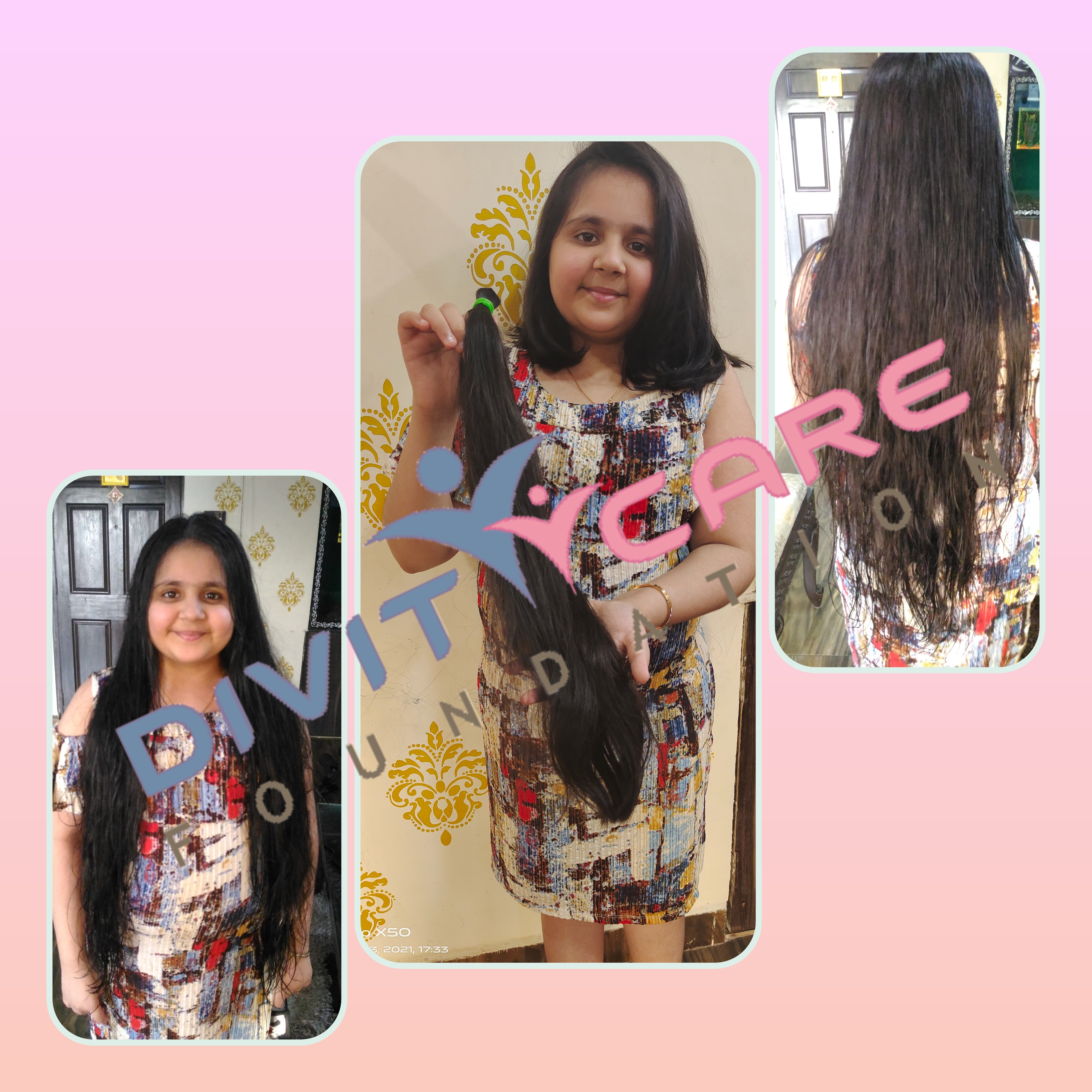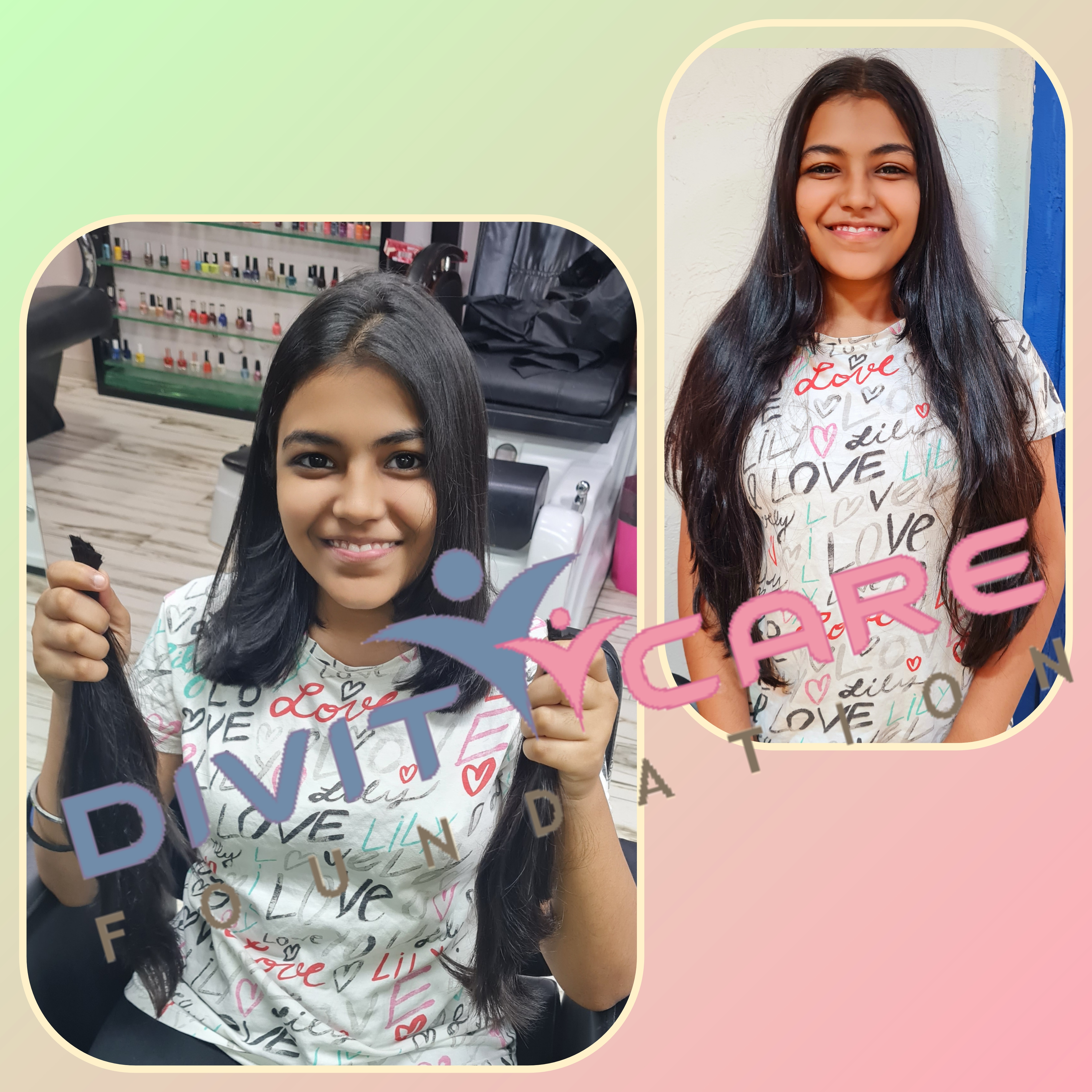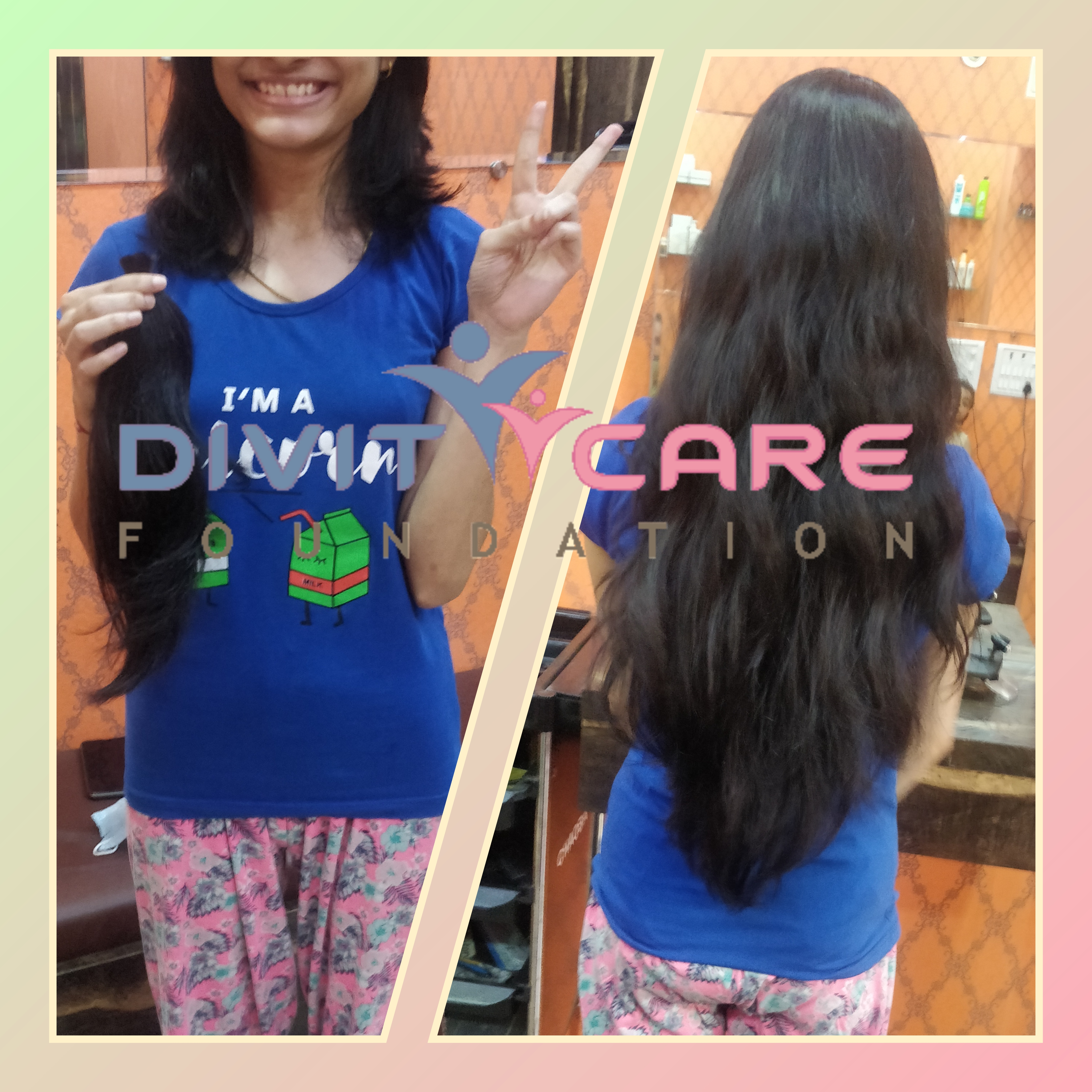 I am Happy to Donate my such a long hair for a good cause which can bring smile on Someone Face. After Doing this 1st time Hair Donation i am Growing Again for same Length and Love to Donate again to DIVITCARE FOUNDATION.